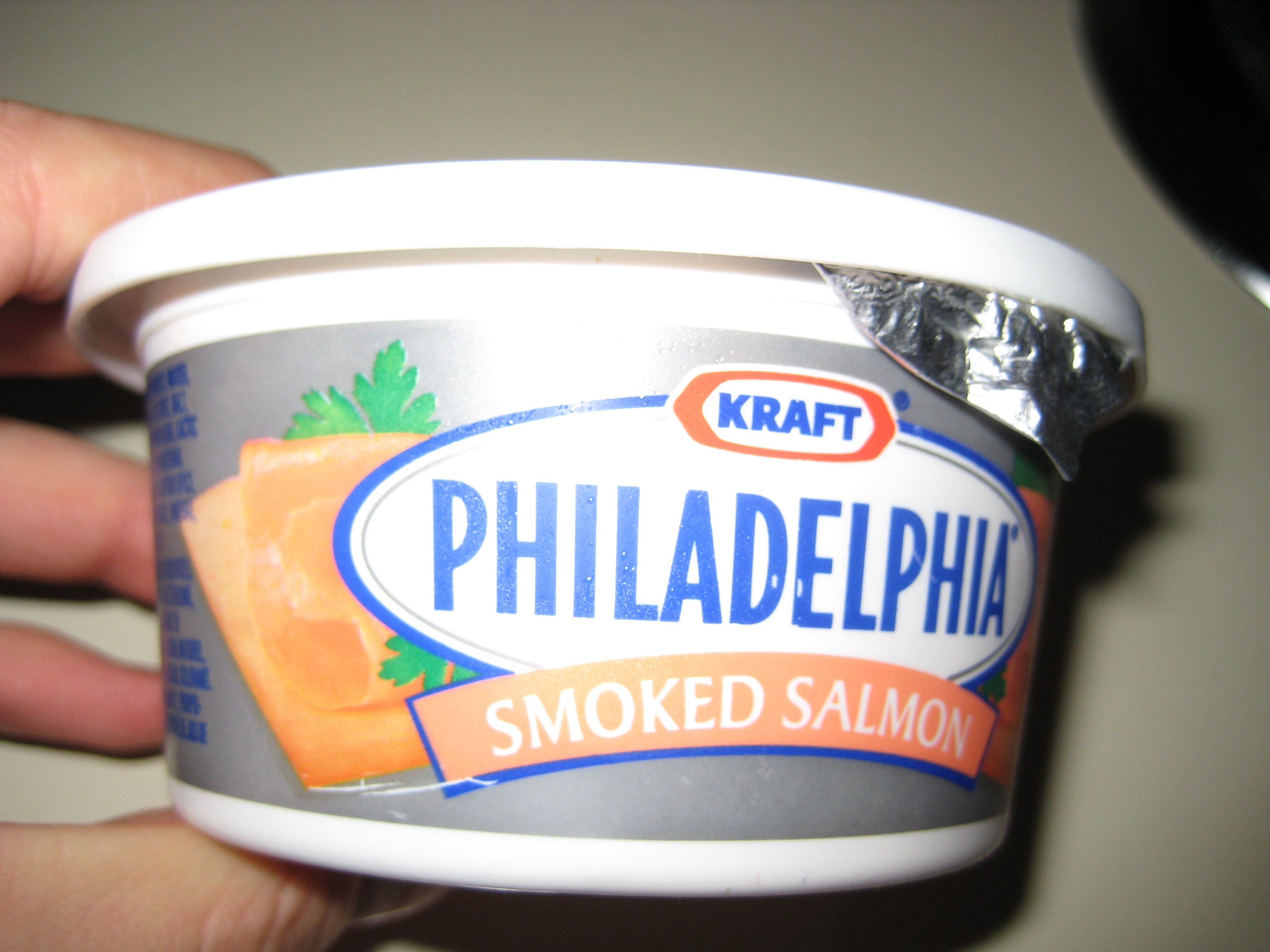 I thought it was really just artificially fish-flavoured and pinkified cream cheese, but the third ingredient is real honest-to-goodness smoked salmon.