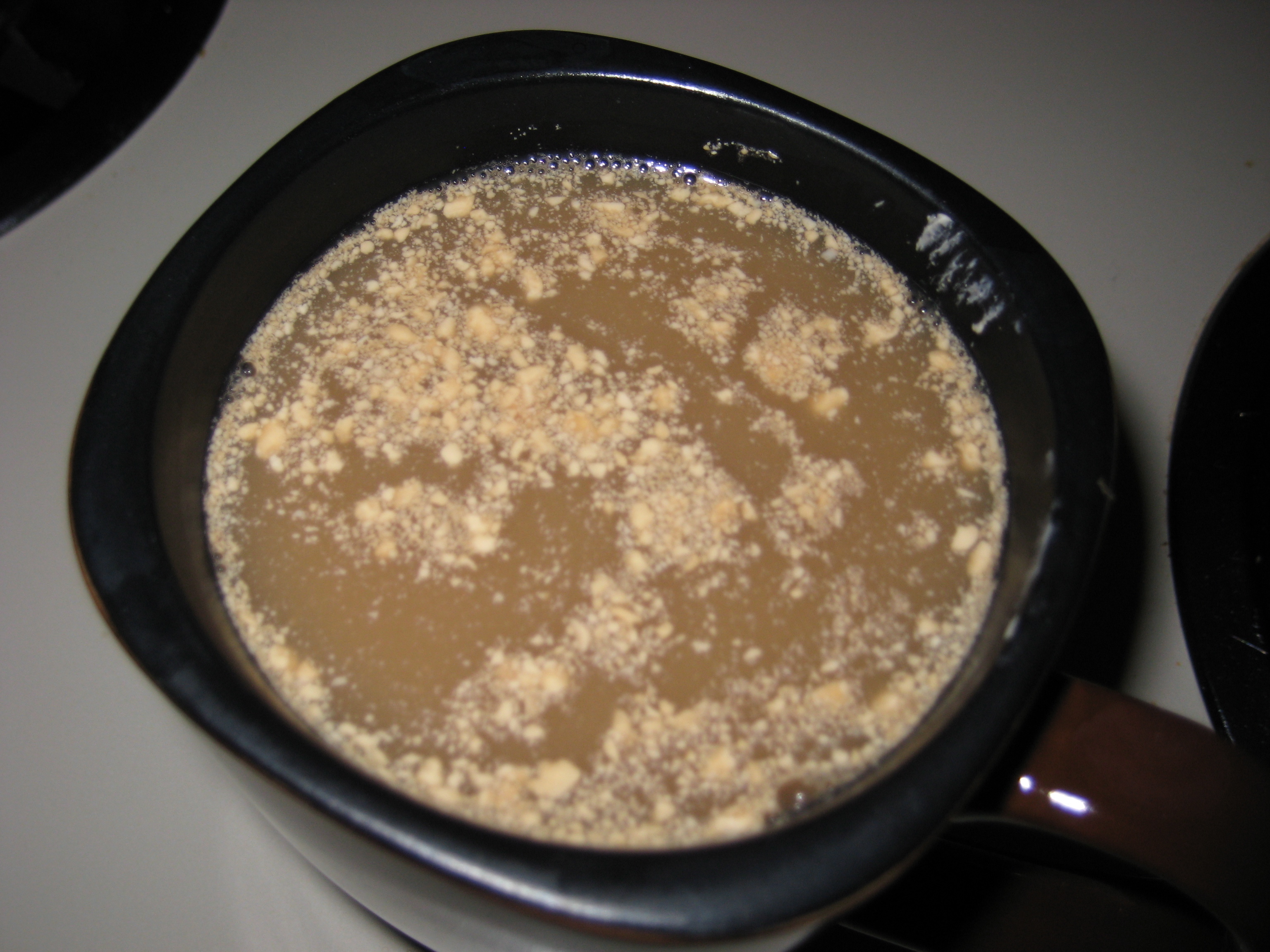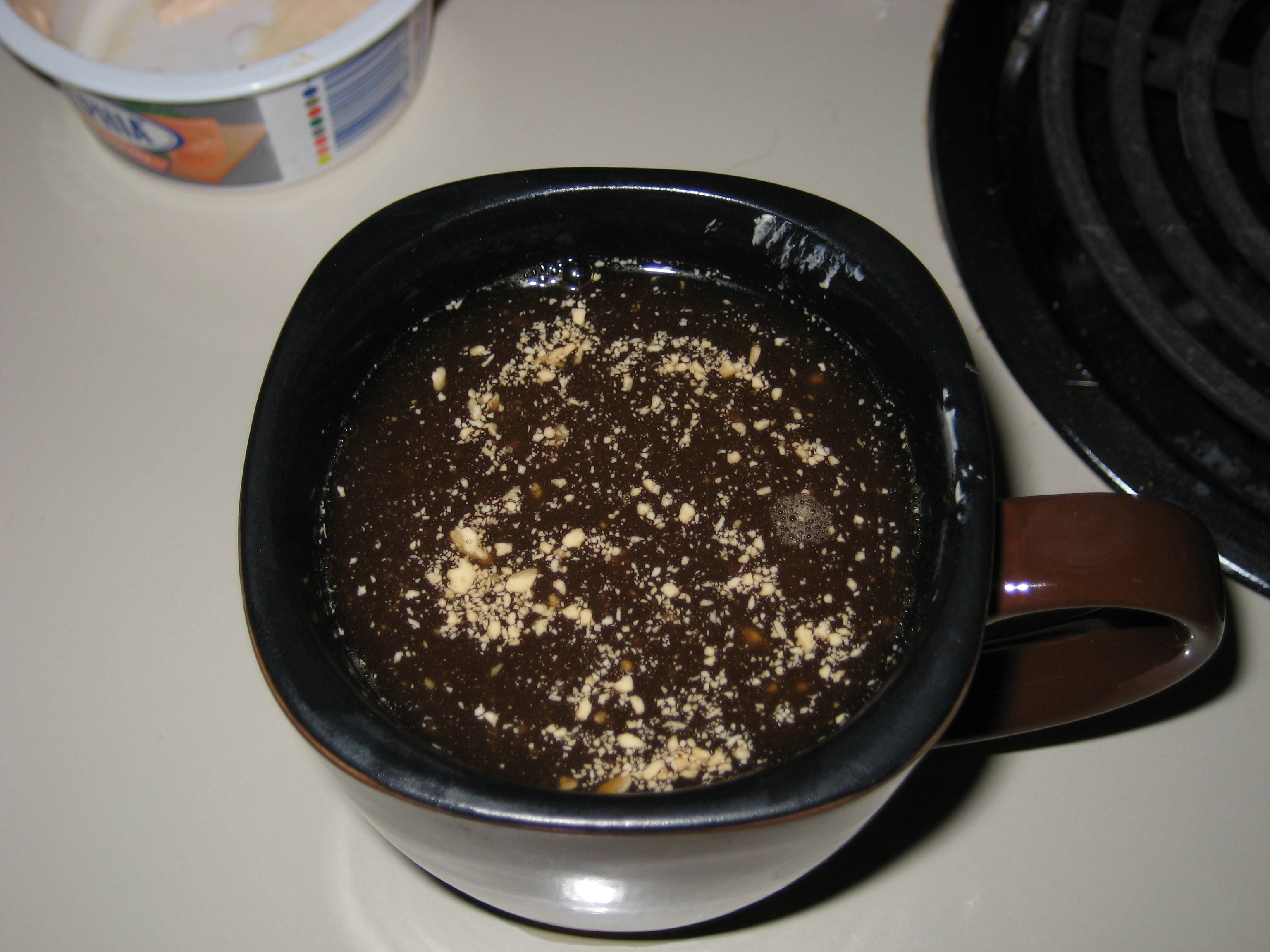 I thought maybe the chunks were just cream cheese that refused to melt, so I threw the mug in the microwave for a while. All that accomplished was a fishy-smelling microwave. I’m thinking the rubbery white bits were the salmon itself, which given their unrecognizable state, tells you something about the quality of the salmon used in the cream cheese. Perhaps it would have been more accurate to list “ground up fish product” on the ingredients label.
