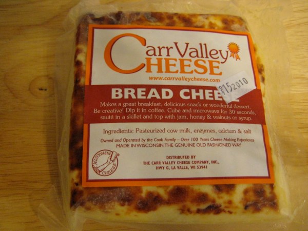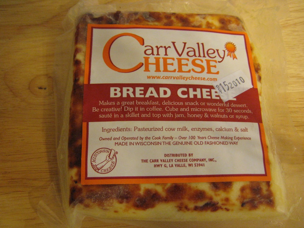 The finest purveyors of bread cheese on this continent seems to be Carr Valley, based in Wisconsin. Monica Wright, a Minneapolis reporter, read my post and got in touch with me. Minnesota happens to be close to Wisconsin, and being pretty much the awesomest person in the world, Monica offered to send me some Carr Valley cheese for testing.