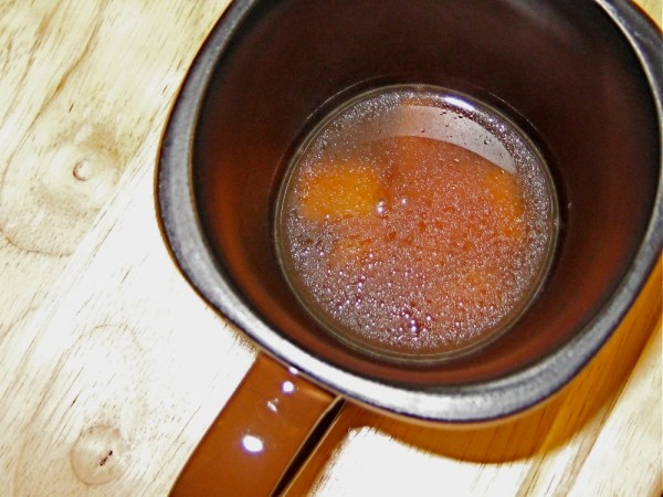 I should’ve cut off a bigger chunk, because half of it seemed to go missing after mingling with the coffee. I only managed to scoop out a little smear to put on my bread.