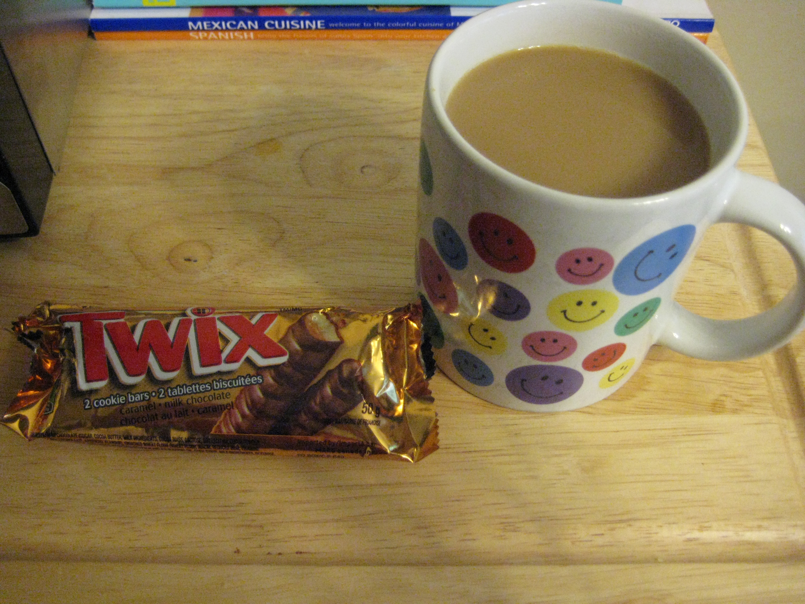 Twitterfriend Aaron McGowan tweeted that Twix + Coffee = delicious. I am never one to pass up proving someone right—or even better, wrong—so I gave it a shot.