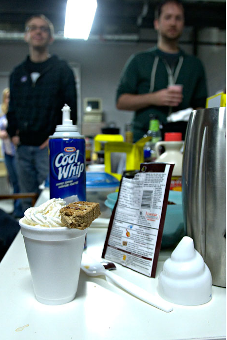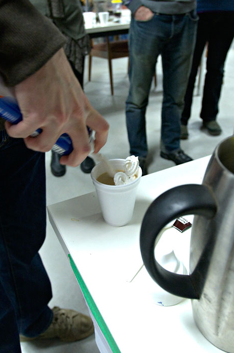 Unusual brewing methods were as abundant as unusual ingredients. Co-organizer Laura tried out some delicious flavoured cold brew coffee. Other co-organizer Andrew “Twitch” Berdan handled the Turkish coffee. He also brought some home-made ingredients, like this from-scratch cottage cheese:
