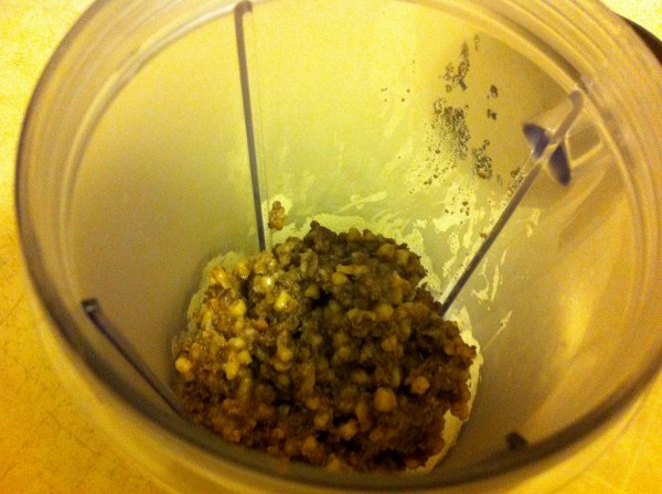 Haggis is a traditional Scottish dish, made of a sheep’s heart, liver, and lungs, mixed with oats and spices. It’s known for being simmered in a sheep’s stomach, but I didn’t have one handy, so I had to settle for tupperware and a microwave.