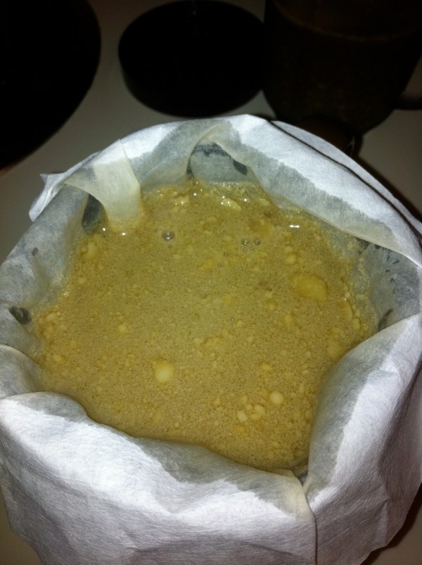 When I took it out of the fridge and opened it, the smell was not entirely pleasant. I still had to give it a chance, though. I set up an apparatus to filter out the chunks, leaving only pure black haggis-flavoured coffee. Or at least that was the plan.