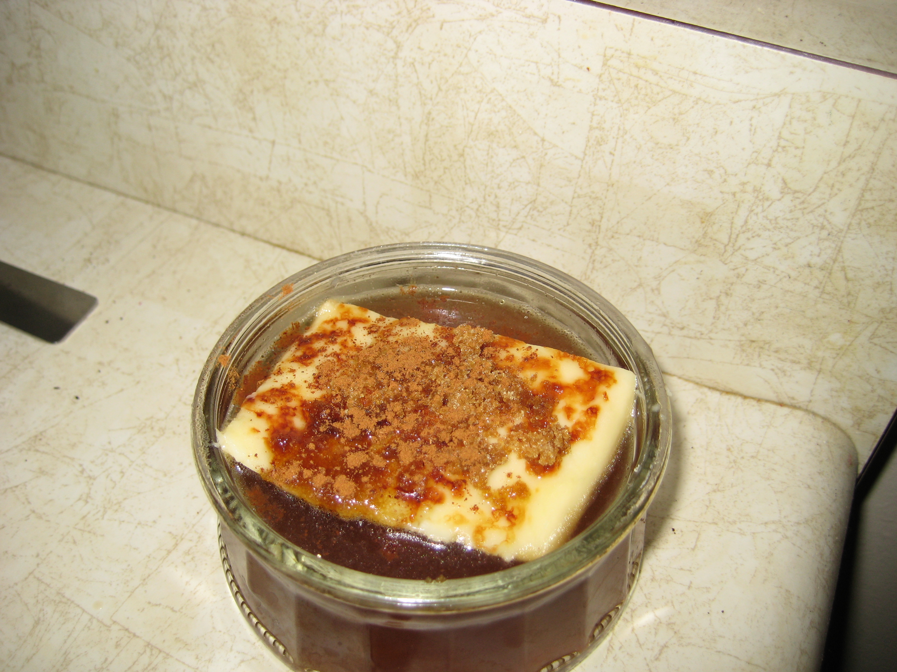 I still had some bread cheese left. I’d heard it’s good with brown sugar and cinnamon baked on. I had the brilliant idea of topping coffee with a layer of the cheese, topping that with cinnamon and sugar, broiling it in the oven, then having a lovely crust to sip the coffee through, giving it just a hint of the cheesey brilliance before finishing it off with a soon.