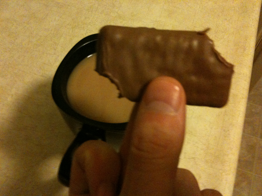 Twitterfriend Aaron McGowan tweeted that Twix + Coffee = delicious. I am never one to pass up proving someone right—or even better, wrong—so I gave it a shot.