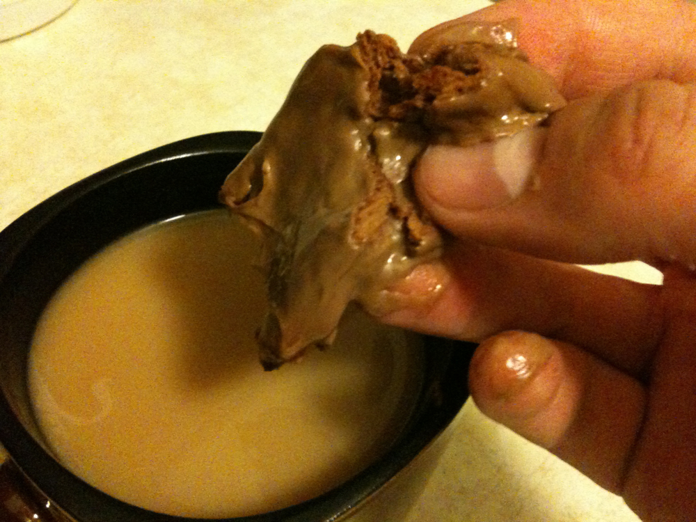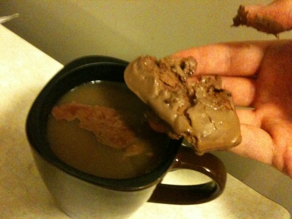 This would resemble the Tim Tam Slam, which is something I have always wanted to try, but Tim Tams seem to only be available in Australia. Anyone out there know of a way to procure a Tim Tam here in Ontario? Please tell me, and I will both love you forever and give you credit for what would surely be an embarrassingly messy post.